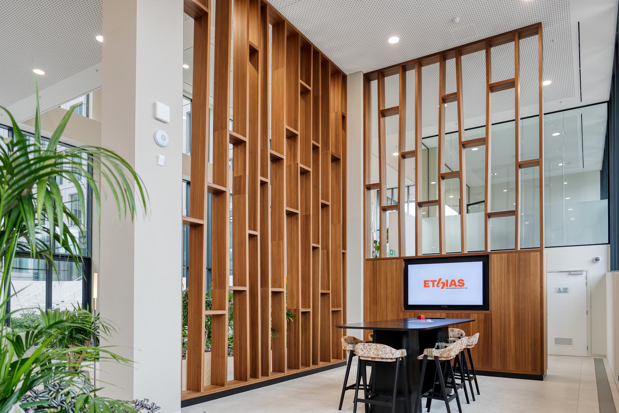 Dans le cadre du projet « Ethias Rives Ardentes », Palm Wood Interior a réalisé, sur plusieurs étages, différents éléments d’aménagement intérieur. Le projet a été conçu par le bureau d’architectes Jaspers-Eyers Architects, en collaboration avec les entreprises de construction Franki, CIT Blaton et Jan De Nul. L’architecture d’intérieur a été développée par le bureau Chills.