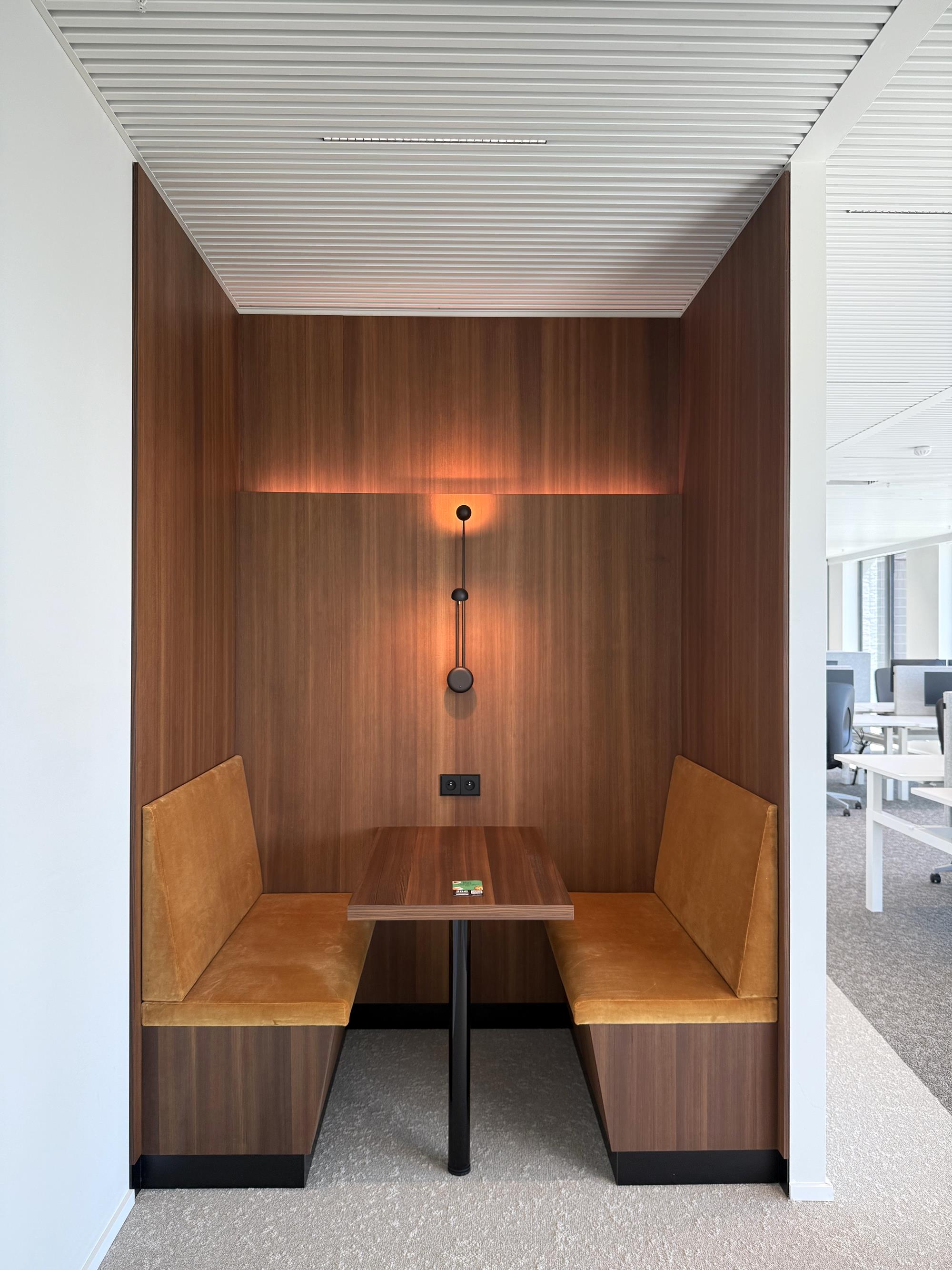 Ce projet illustre parfaitement comment des concepts d’aménagement réfléchis, un savoir-faire artisanal précis et un choix ciblé de mobilier et d’équipements intérieurs permettent de créer des environnements de travail qui séduisent durablement aussi bien les visiteurs que les collaborateurs.