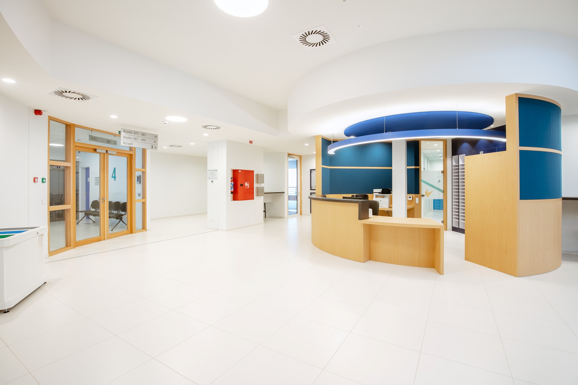 Wir haben diverse Möbelstücke und Einrichtungsgegenstände geliefert, die zur Modernisierung dieser Tagesklinik beitragen. Der weitläufige, freundlichen Empfangsbereich wurde mit einem großen, praktischen Tresen ausgestattet.